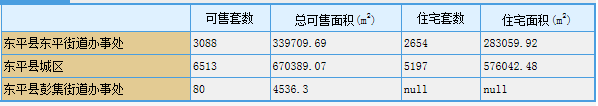 截止2016年1月29日,东平县可售期房情况如下图所示: