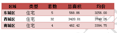 销售楼号 | 成交套数 | 成交面积 | 成交均价 | |