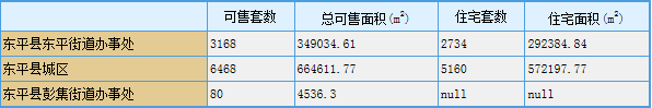 截止2016年2月1日,东平县可售期房情况如下图所示: